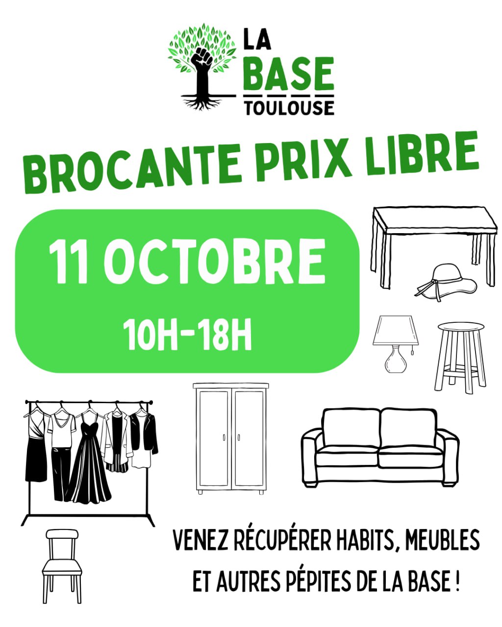 Brocante à prix libre, en espèce ou via la collecte sur HelloAsso (QR code). Le distributeur de billets le plus proche est au métro Rangueil.